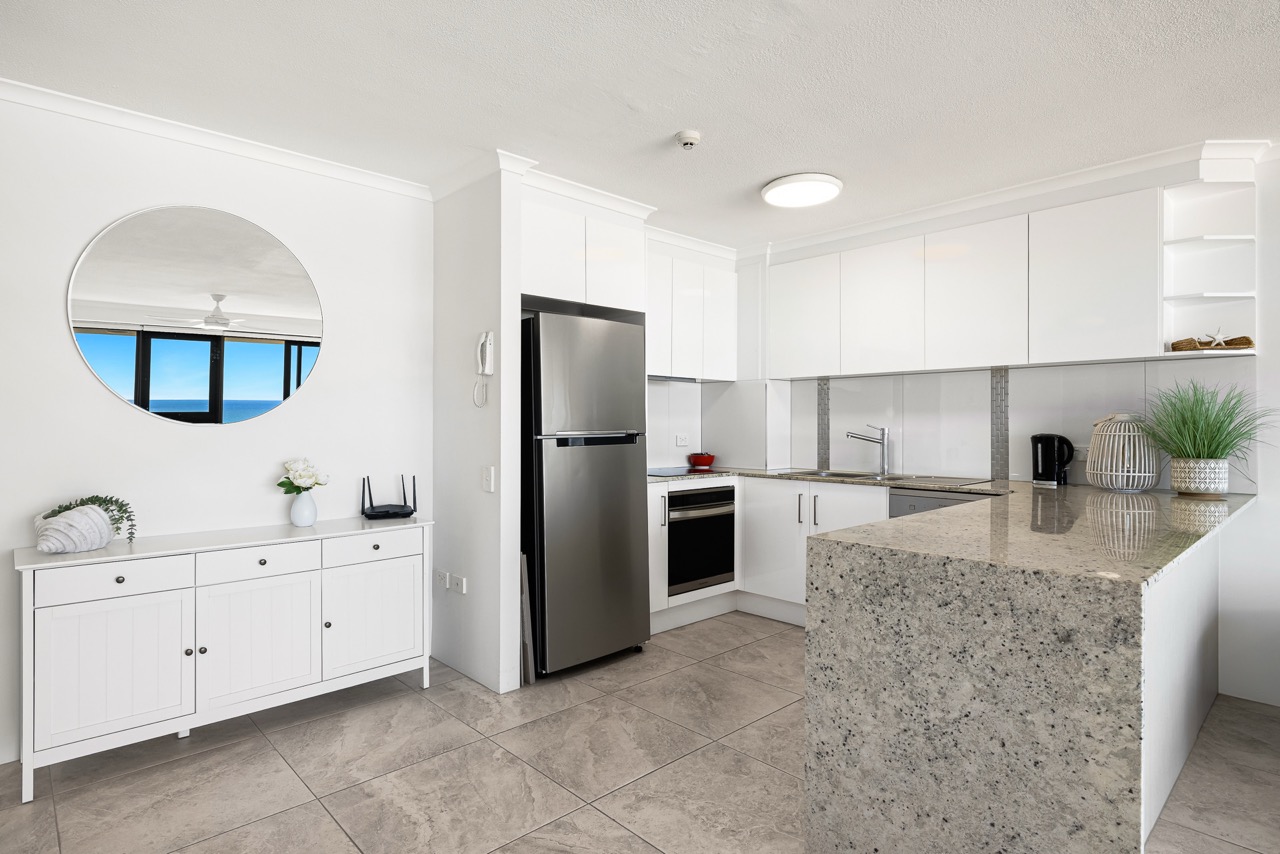 Perched high on levels 9–16, our spacious 1-bedroom apartments boast sweeping, uninterrupted ocean views – the kind that stop you in your tracks. Step onto your private balcony and take in the endless blue horizon, where golden sands meet sparkling waves. It’s the ultimate backdrop for your coastal escape.